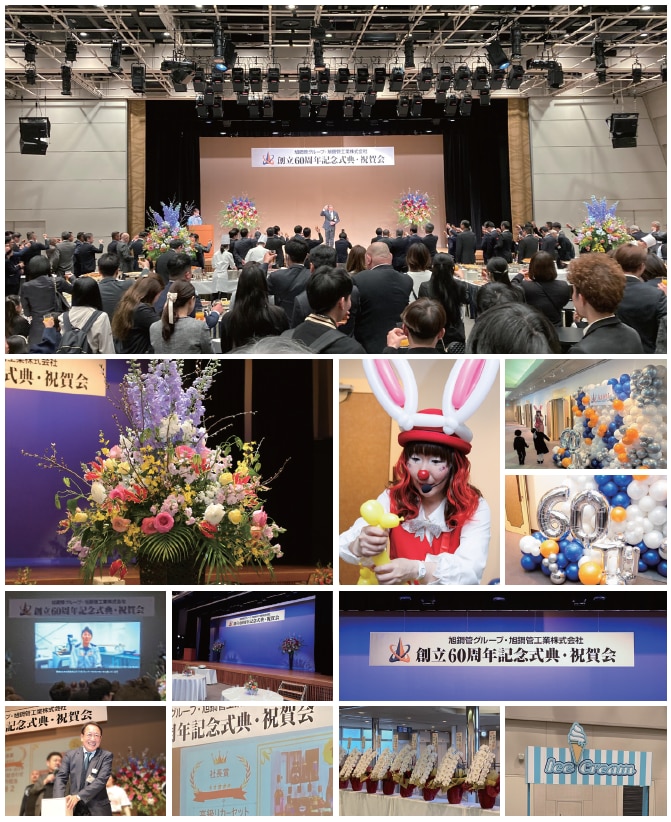 旭鋼管グループとして支社が全国へと拡大していることから、全社員の交流を主な目的として創立60周年記念式典を開催。