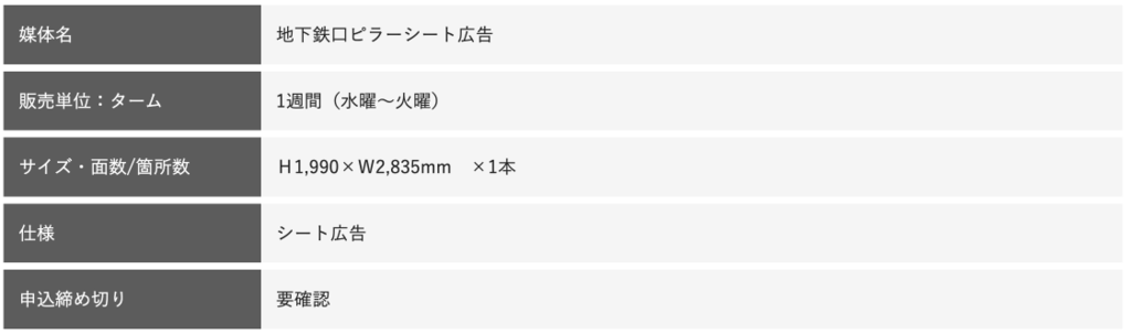 東京メトロ銀座駅三越改札から、銀座三越地下1階入口への動線上に位置する柱のシート広告です。