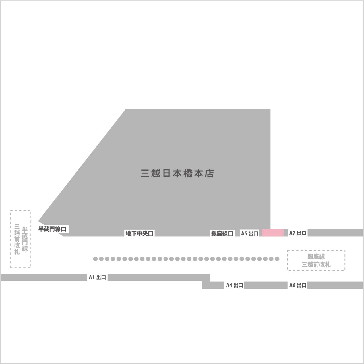 日本橋三越の地下のメイン入口である銀座線口近くにある大型ウインドウです。銀座線改札から入口への動線上に位置し、入館者の目に必ず止まる好立地です。