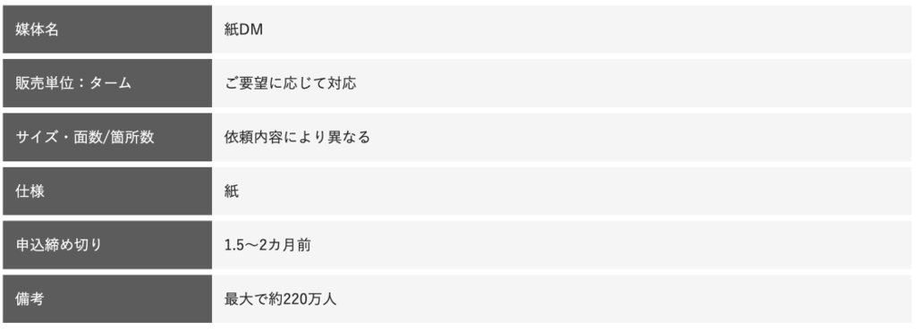 エムアイカード会員向けに紙で郵送する媒体です。同封物は貴社がお持ちのペラや冊子を封入できるため、会員に対してダイレクトに情報をお届けすることが可能です。