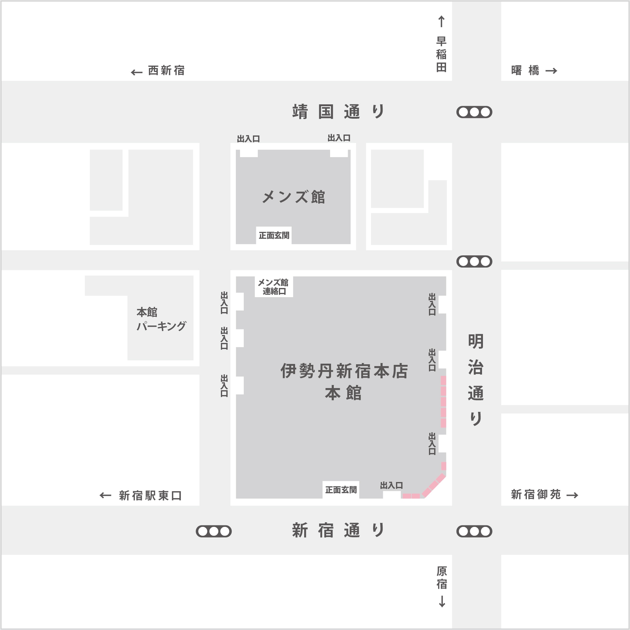 新宿通りから明治通りにかけて伊勢丹新宿店本館の外壁に11面存在する伊勢丹を象徴するメディア。通行者だけでなく車輛に対してもアピール可能なブランディングメディアです。