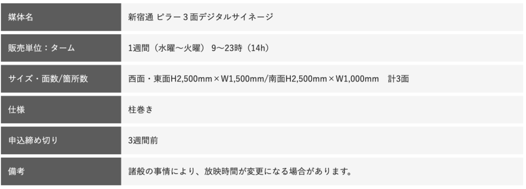 昼夜問わず通行量の多い、新宿3丁目交差点近くの数少ない目線上の大型サイネージです。