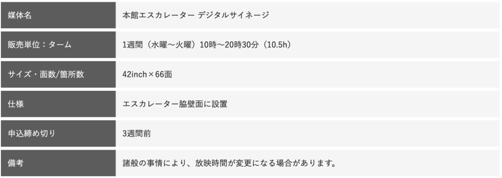 伊勢丹入館者の殆どがフロア移動に使用するエスカレーター脇サイネージで 伊勢丹新宿店来館者の動線を押さえ確実にアピールします。