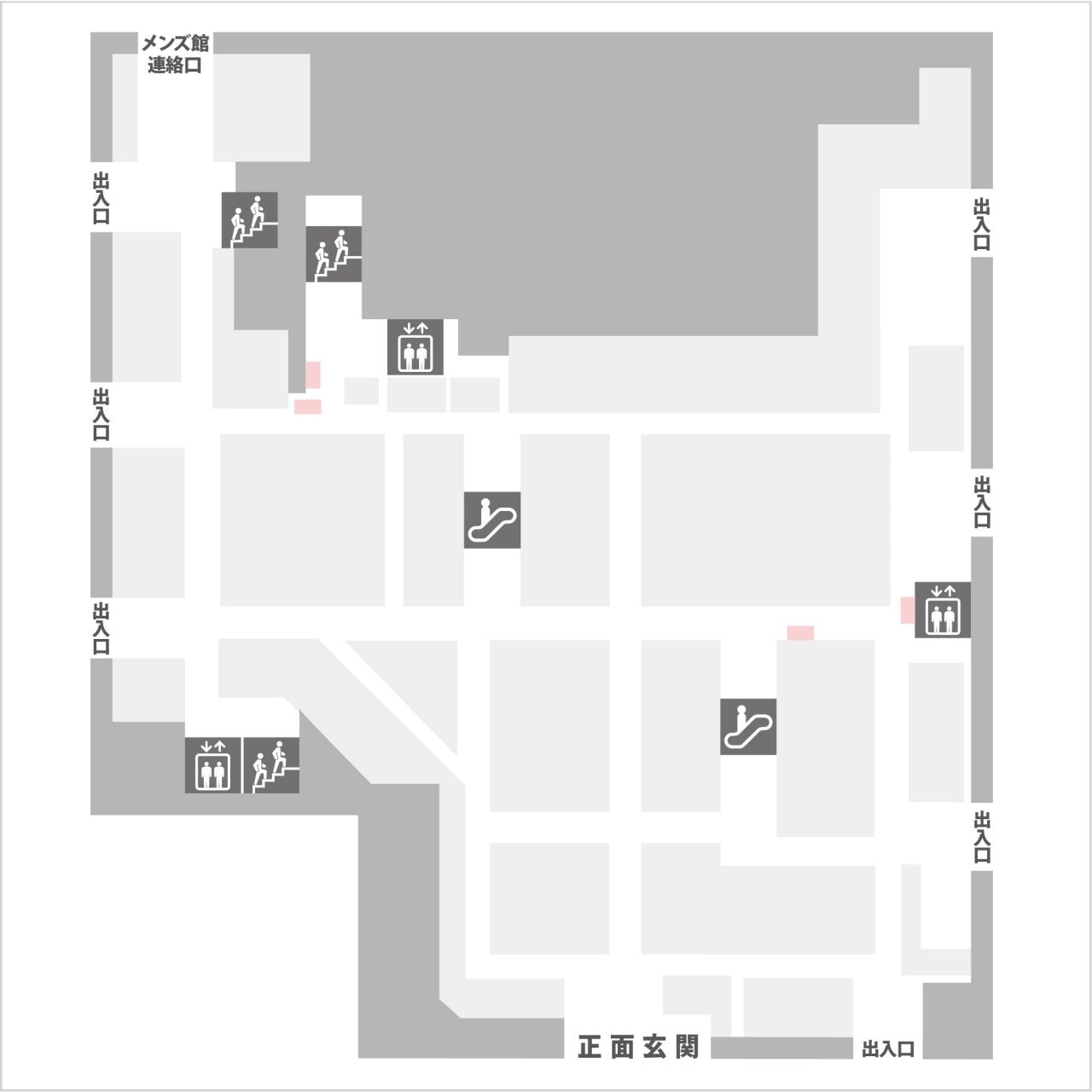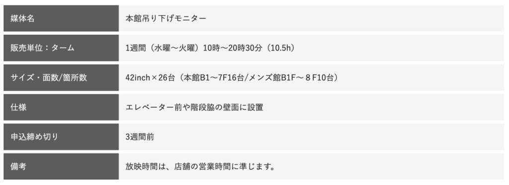 伊勢丹新宿店のエレベーター前や階段脇のサイネージ。来店客が滞留する場所に設置され、視認性が非常に高いメディアです。